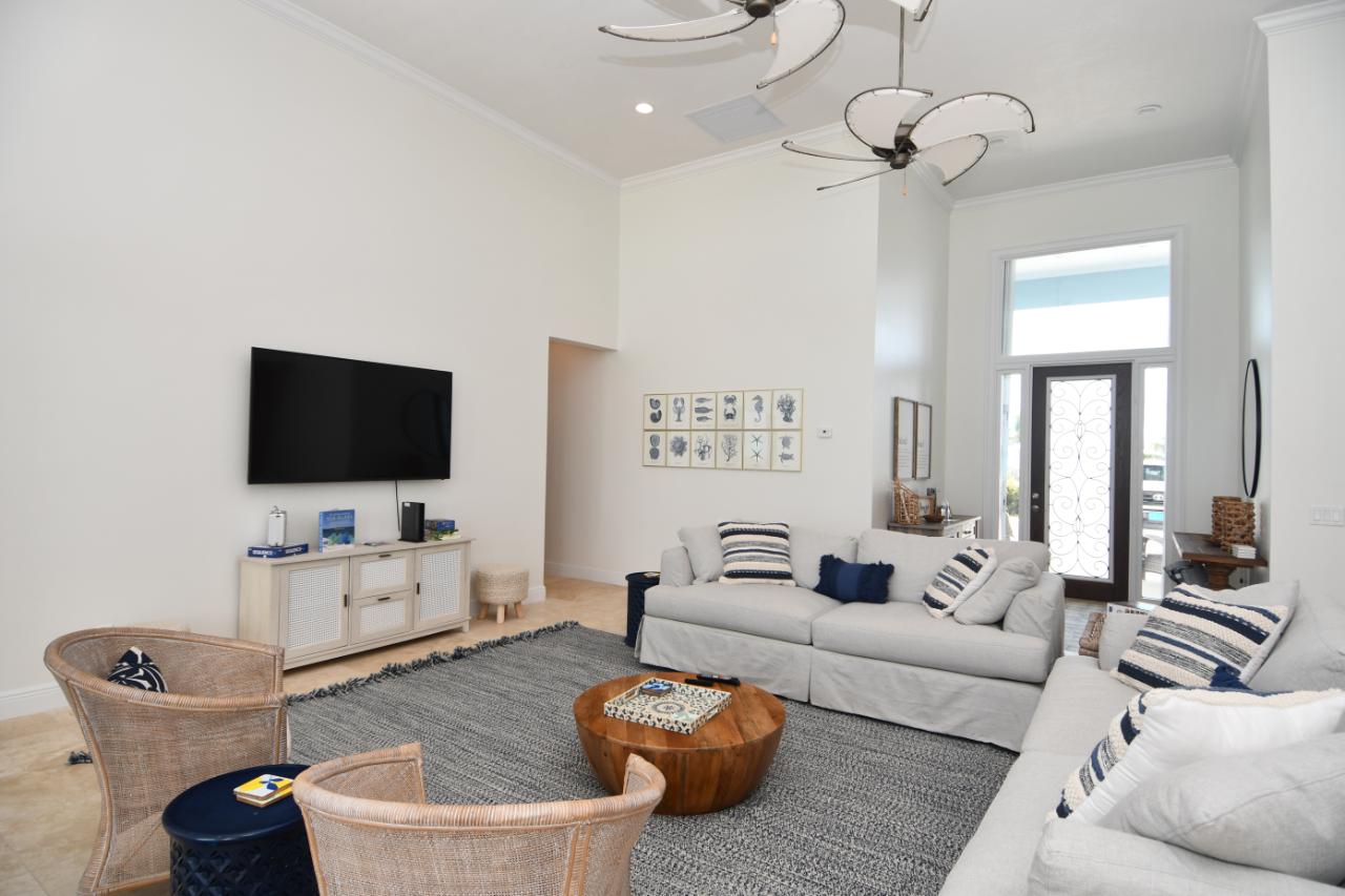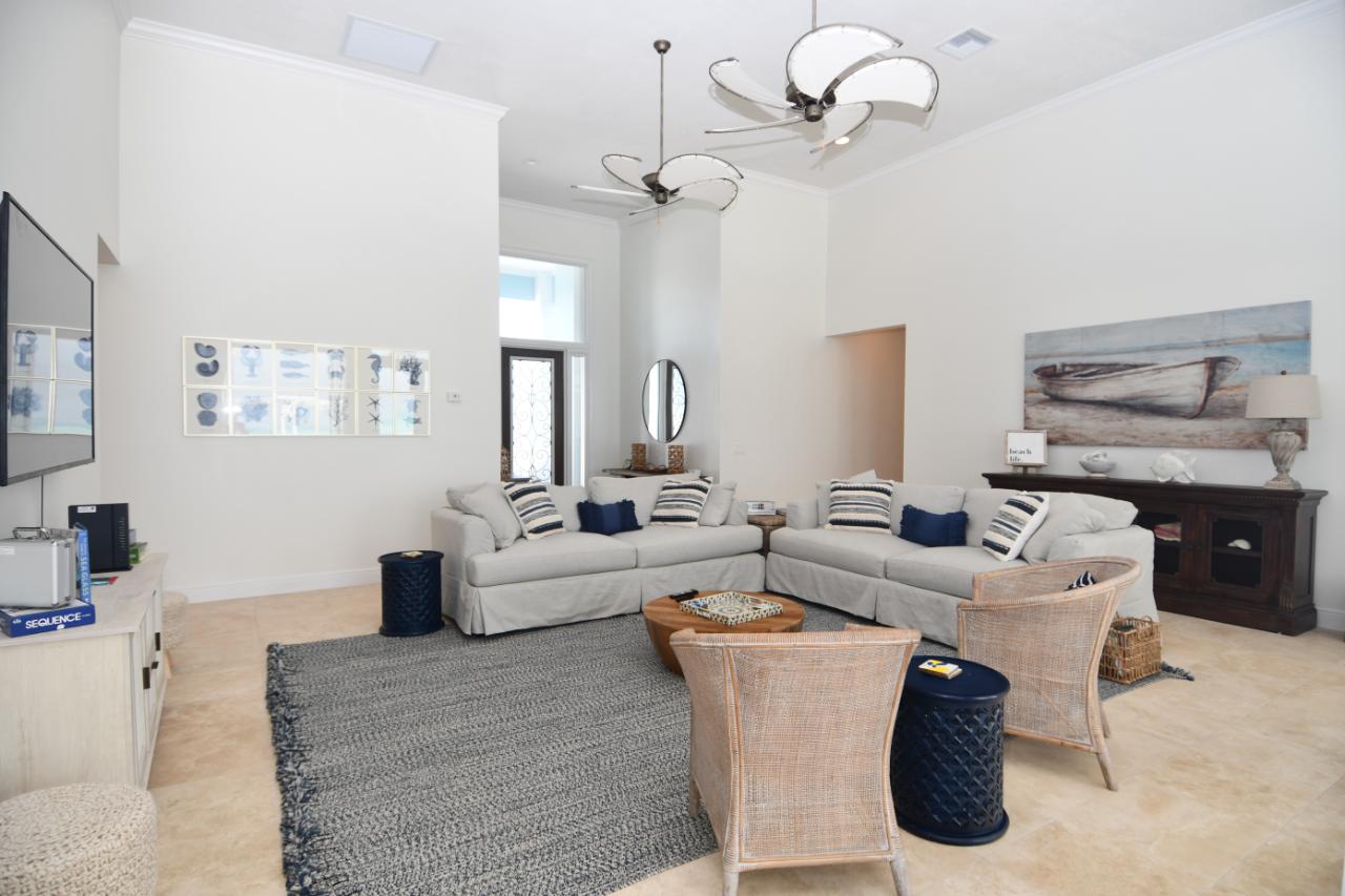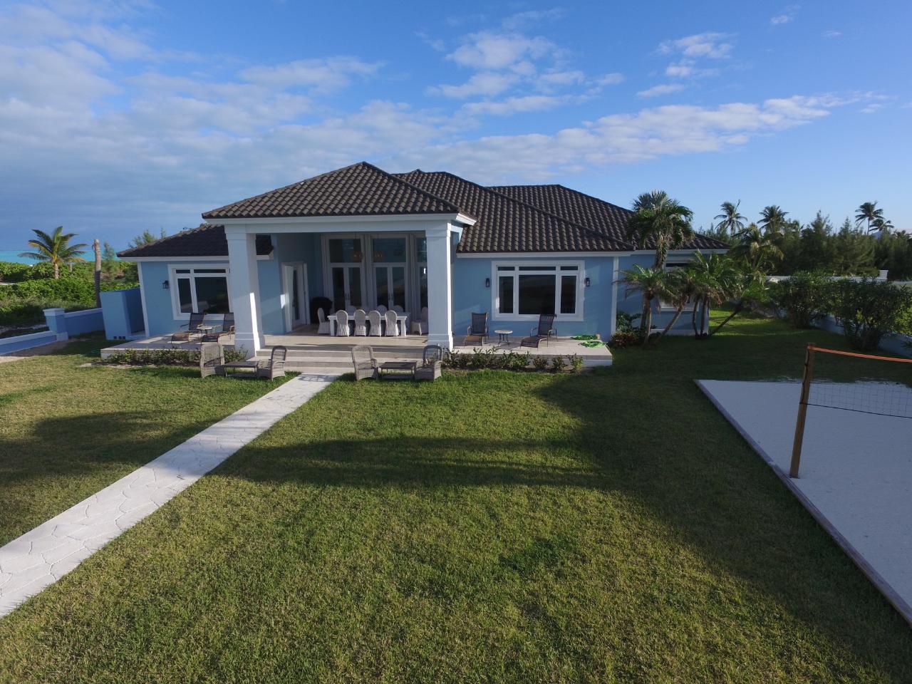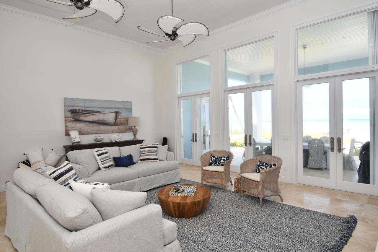 "Sandy Butts & Coconuts" is a spectacular 4 bedroom, 4 bath, totally "turn-key", prestigious elevated beachfront residence. Strategically positioned on 100 plus feet of beachfront property on the tip of the Treasure Cay peninsula. "Sandy Butts & Coconuts" enjoys breathtaking views of the clear turquoise waters of the Sea of Abaco, the pristine white powder sands of Treasure Cay Beach and sensational sunsets. This home, with its 3,349 s/f of living area, plus covered patio and double garage represents luxury beachfront living at its best. The newly refurbished upscale single story home features superior quality construction with all high-end finishes and fittings. This beach house is exquisitely furnished and well appointed, ensuring the ultimate in luxurious tropical beach living. Breath-taking views of the iridescent turquoise waters of the Sea of Abaco are visible from virtually every room. Own your dream beach home located in the most sought after addresses within the Treasure Cay community on the Island Abaco and enjoy strolling along Treasure Cay's world famous 3.5 mile beach.