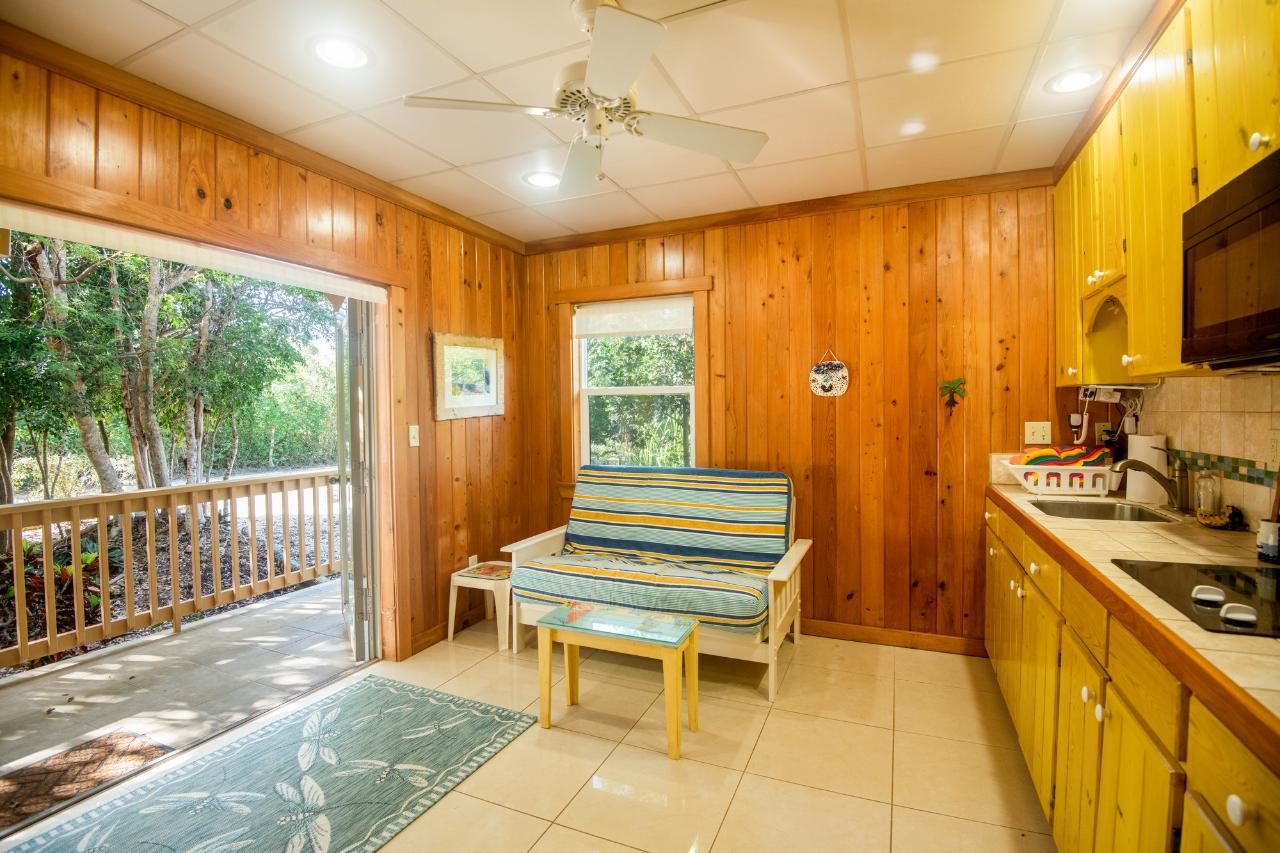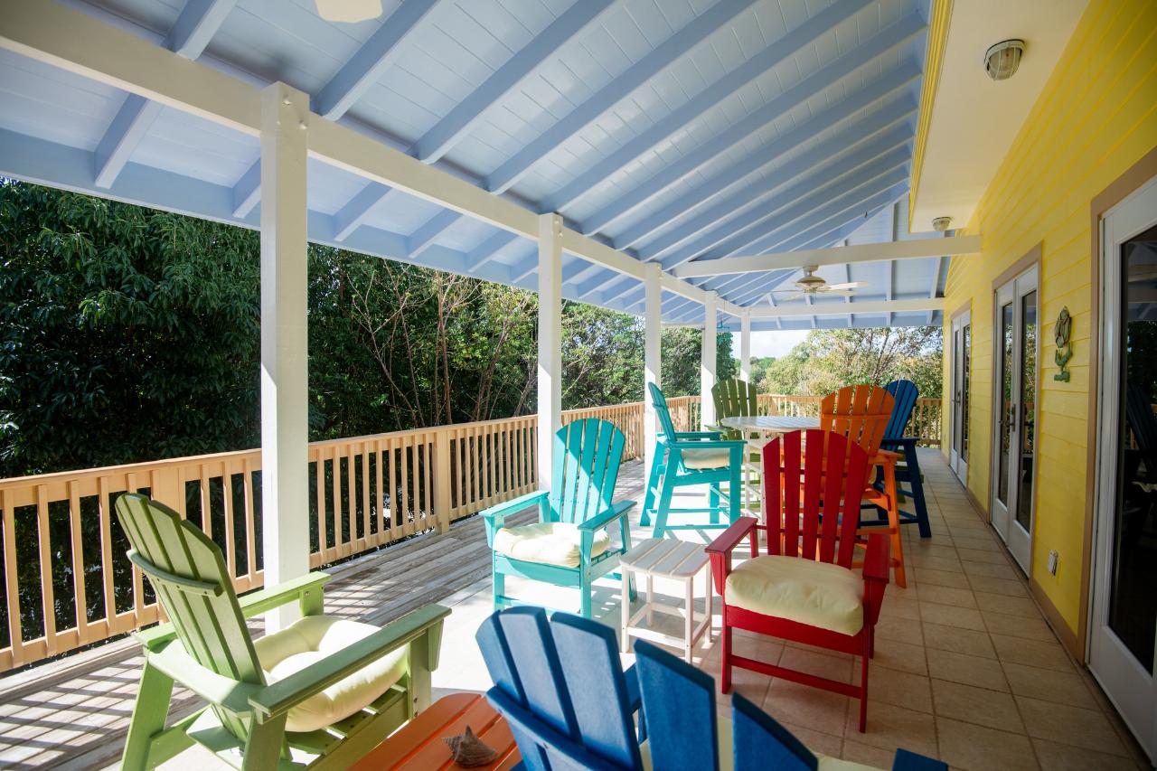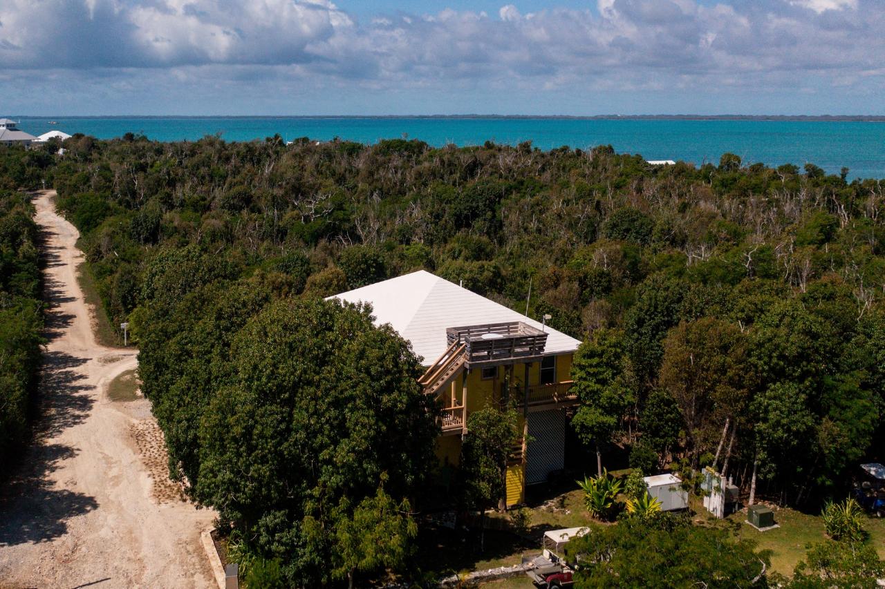 As you step inside, the main floor welcomes you with a bright, open layout featuring natural island furnishings that blend seamlessly with tropical surroundings. The kitchen is fully equipped with new appliances and a large center island. The open living and dining area provides a great space for relaxation and entertainment, and the two bedrooms both boast ensuite baths. One of the highlights of this home is its large wrap-around porch, adorned with fun and inviting outdoor furniture. Here, you can bask in the refreshing breeze and witness the breathtaking sunsets that paint the sky in vibrant hues. For a stunning view of the Sea of Abaco, ascend to the lookout tower, where you can immerse yourself in the beauty of the surroundings. The home also features a Bermuda roof, combining durability with a touch of tropical charm. Situated on a double lot totaling 20,000 sq ft, there is an exciting opportunity for expansion or the addition of personalized features such as a pool or gazebo.