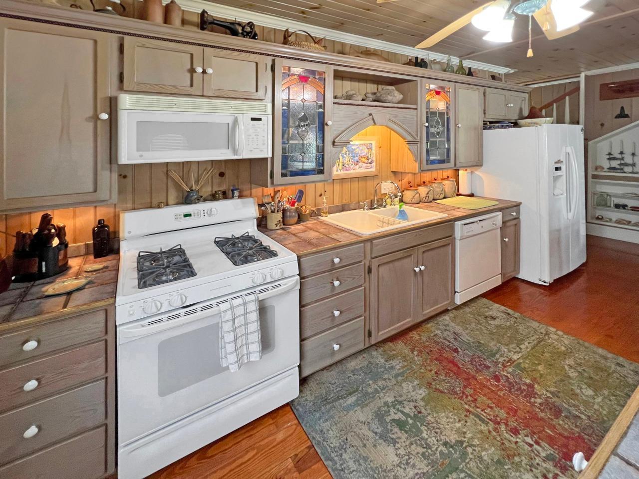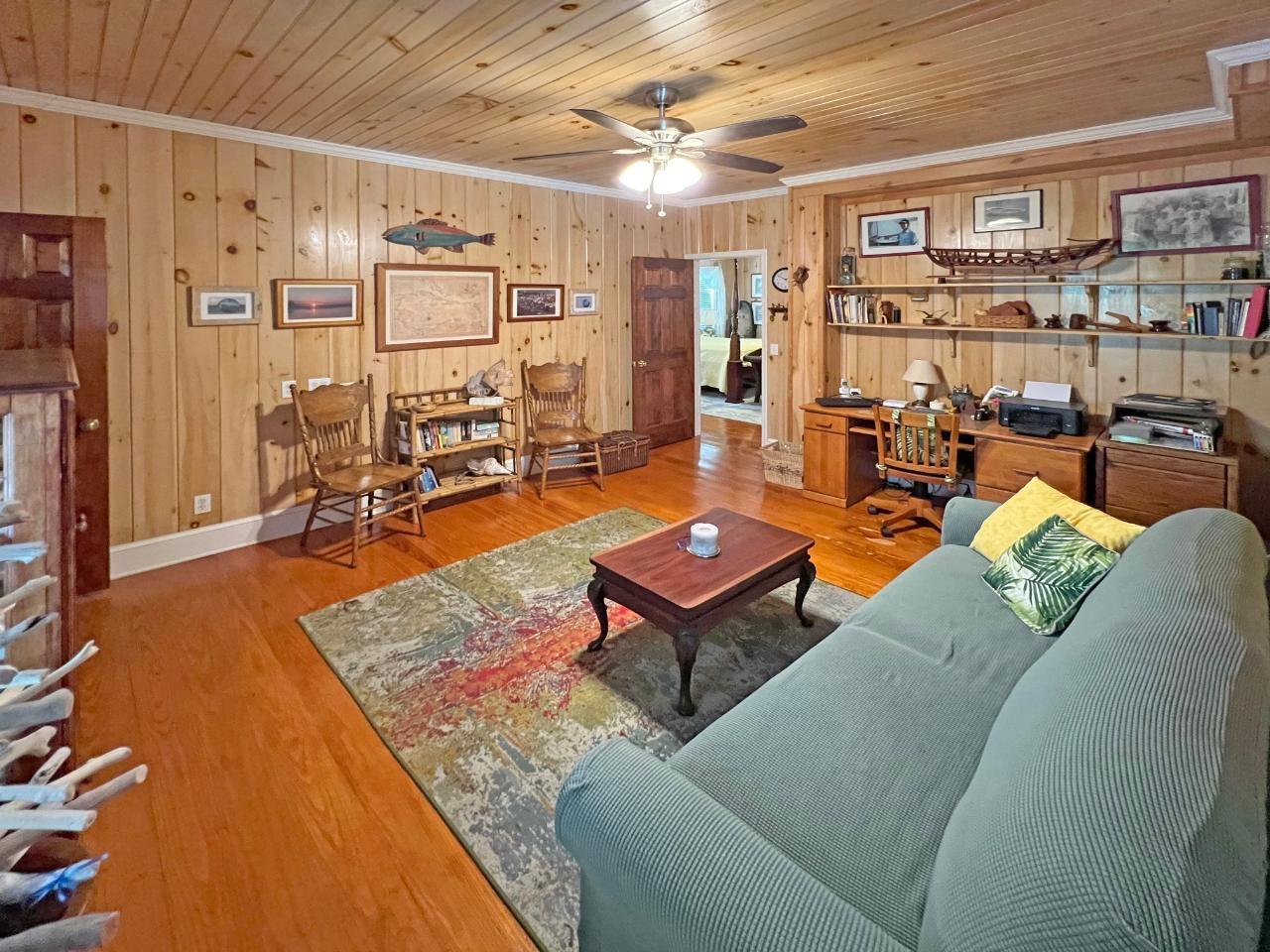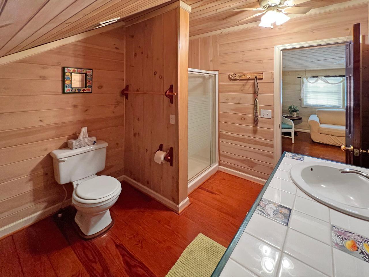 "Mintobee" contains 11,987 sq ft of privately hidden property located on 122 ft of rarely offered, concrete bulkheaded Man O War harbour waterfront. Built by builder Roland & his wife Charlotte Albury, the 1,533 sq ft two storey metal roofed main house has 605 sq ft of surrounding covered porches where outdoor living is at its most comfortable best. With 4 bedrooms, 3 bathrooms, a large kitchen, living/dining room, library & laundry workroom there is expansive living area. Custom crafted furniture and cabinetry are found throughout the home. Nearby is the 386 sq ft guest apartment built over the garage/workshop and boat slip. Whether looking out from the houses or sitting relaxing under the giant almond tree in the landscaped gardens, your view is drawn down the harbour, across to Dickies Cay or out over the sea of Abaco. 97 ft of very well protected fingered docks are complemented with a 144 sq ft roofed gazebo.18,500 gallons of cistern water and a 20 Kw back up generator give lifestyle support. This is a very rare offering and must be seen by any discriminating buyer.