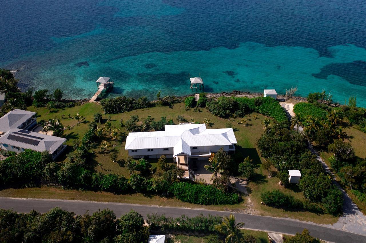 Welcome to your fly-in, private paradise on Scotland Cay in the Abacos! Built high on a double lot spanning 1.2 acres, with 270 feet of sea frontage, this well-built vacation home offers breathtaking views from every angle. This is the ultimate, low-key, island retreat in an exclusive setting.Boasting four bedrooms and four and a half bathrooms, this elevated home provides ample space and comfort for you and your guests.As you step inside, you'll be greeted by an open and airy floor plan that seamlessly blends indoor and outdoor living. The wraparound porches are an inviting space to relax and enjoy the gentle ocean breeze while taking in the panoramic vistas of crystal-clear turquoise waters. The interior features spacious living areas designed with both style and functionality in mind. The tastefully appointed rooms are adorned with high-quality wood finishes and offer a serene ambiance that complements the natural beauty surrounding the home.